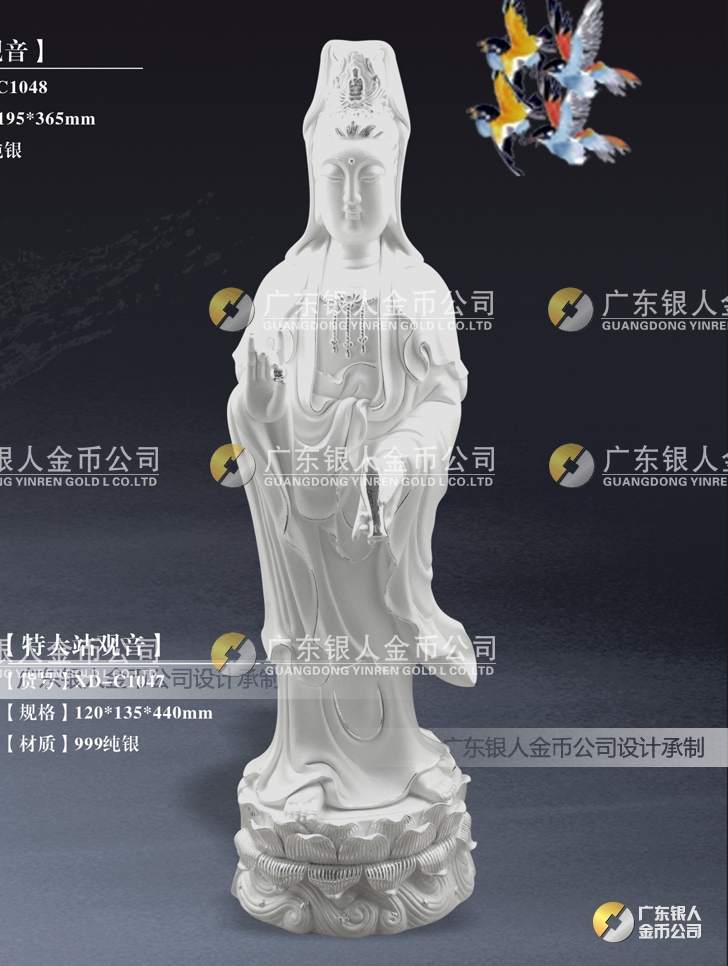 純銀觀音像工藝擺件、純銀觀音菩薩擺件