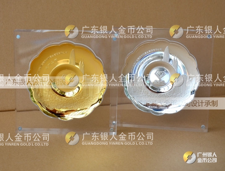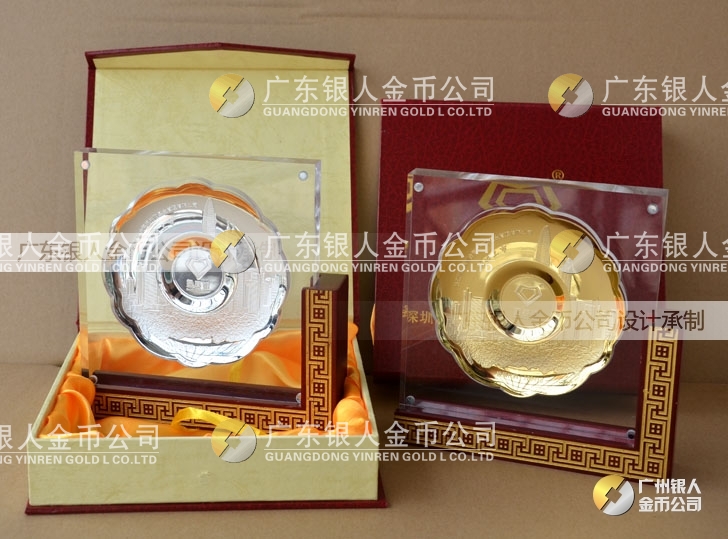 深圳金賽銀并購基金公司企業上市純銀紀念盤定做、鑲水晶擺件底座