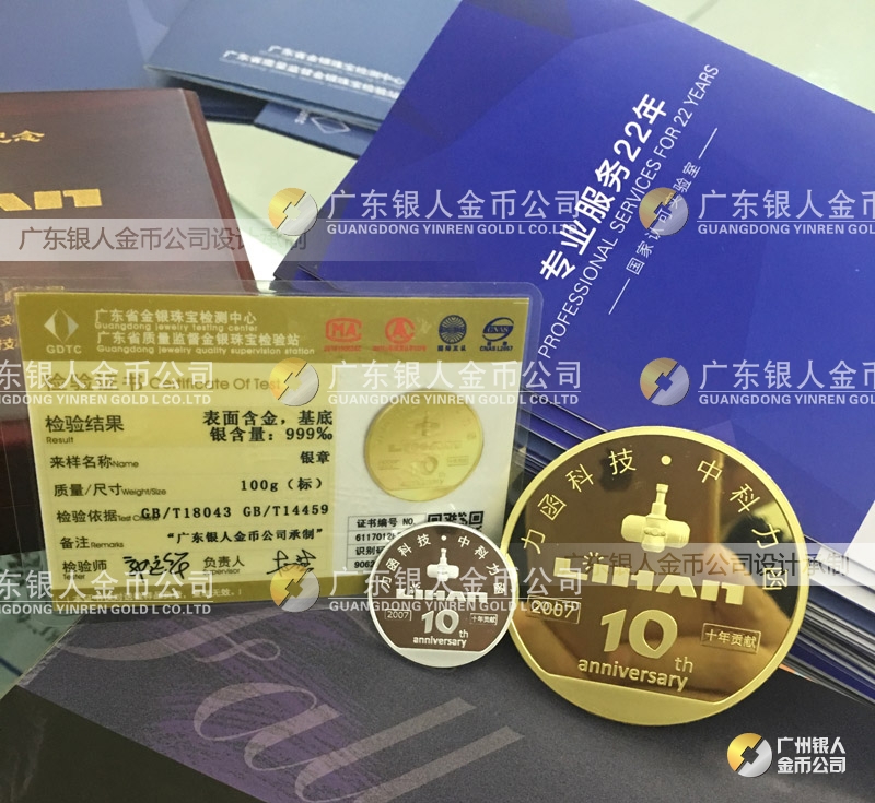 中科力函是中國科學院理化技術研究所旗下合資企業,為獎勵十年貢獻科技進步獎,委托我司設計、制作純金銀獎牌制作。